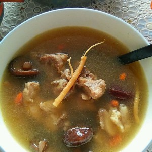 先把排骨用热水焯一下,打出浮上来的泡沫,继续加凉水,加泡开的香菇,大火煮开10分钟后转小火慢炖一个小时,然后加入枸杞和党参再炖半个小时就可以出锅了,出锅时候撒点盐。