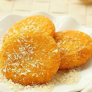 用玉米油将南瓜饼炸成金黄色,美味的金秋南瓜饼诞生啦!