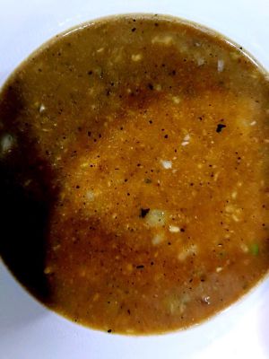 加入黑胡椒末、生抽、蚝油、糖调味后慢慢煮到汤汁变浓。