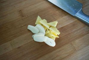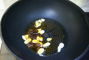 锅中倒入适量的油大火烧热加入姜蒜爆香