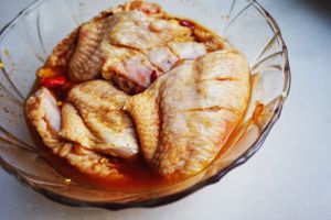 鸡翅洗净,用刀划开,方便入味易熟。腌料用水调开,放入鸡翅腌制一夜。