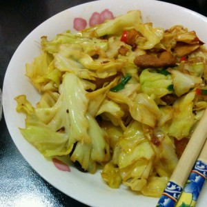 放入手撕好的圆白菜,同时放去少量酱油醋翻炒