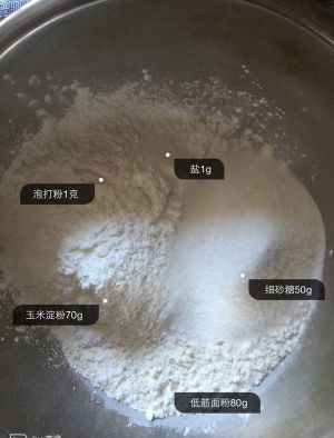 把低筋80g 玉米淀粉70g 细砂糖50g 泡打粉1g