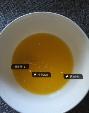 黄油50g融化液体后加入20g牛奶 1g香草精