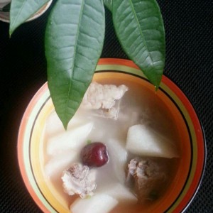 大约40分钟,滴几滴醋,使钙质更好的进入汤中。这时可加入红枣。