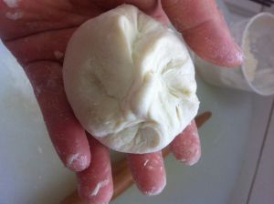 取小面团放入馅