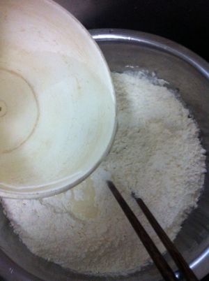 用筷子搅拌,面团是热的,不要用手。