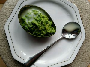 把牛油果泥倒入之前的牛油果皮中,可以配上炼乳,也很好吃哦~\(≧▽≦)/~