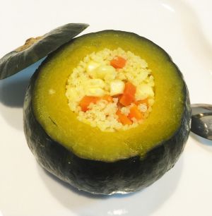 装饰一下,漂亮的南瓜盅,美美的午餐。吃的时候调味