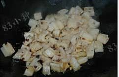 热锅放油,油热后下少许姜末炝锅后,倒入藕丁翻炒至断生