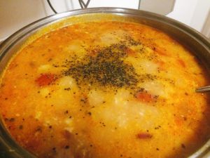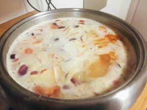 大火煮开后加入土豆泥与玉米粒,因煮的量多,意面红酱需四大勺~具体请按食材酌减~ 调小火煮20分钟
