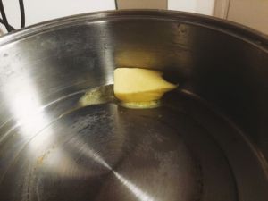 黄油煎化,因为整道汤没有什么油脂来源,所以建议黄油多一些