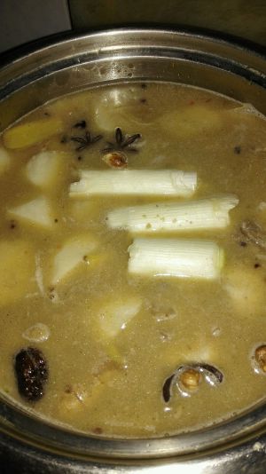 先把牛杂用高压锅闷熟烂切好备用,这样吃火锅的时候牛杂会透一些,然后准备好所有的材料