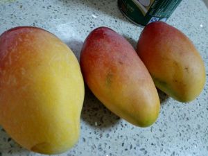 3颗贵妃芒,带着红晕的芒果神马的,最可爱了。