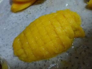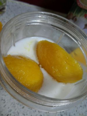放入一个半芒果肉。红与黄的诱惑~(ง •̀_•́)ง