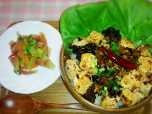 今晚餐里的凉拌豆腐就加上了这个料多多辣酱,真心美味。