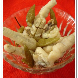 用少量开水将泡椒、花椒先泡好,并放凉。再倒入泡椒,如果有泡椒水的一同倒入,加入白醋、盐调味。(我买的没有泡淑水,就自己加白醋和糖调制到你喜欢的口味)