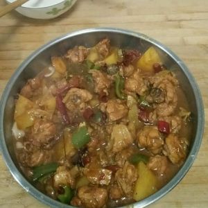 鸡腿,土豆,青椒切成块,葱切成葱节,蒜姜切成片