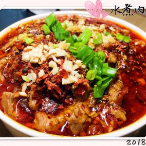 把肉片捞出盛在碗中,撒上磨好的辣椒和花椒面,放上切好的蒜米,起热锅烧油至冒烟,直接倒在蒜米和辣椒花椒面上,激发香味。