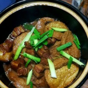 加热水没过肉,以及姜蒜,大料,陈皮,桂皮等,干辣椒,加料酒2勺,生抽2-3勺,盐适量,大火煮开,转砂锅用小火炖约半小时。
