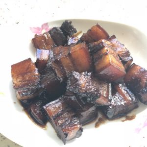 热锅热油,倒入适量红糖、融化,再加入五花肉炒糖色(此时可关火翻炒不至于溅水、炒糊!)