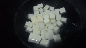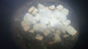 锅中加半碗水,加些盐,少些酱油,水开倒入豆腐