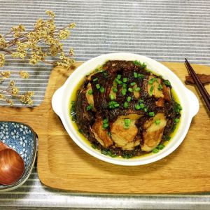 最后将蒸好的五花肉取出,然后找一个盘子,将碗中的五花肉倒扣在盘子中,撒上葱花即可。梅菜扣肉就做好了,肥而不腻,肉烂味香,配上咸香的梅干菜,香味扑鼻,让我直咽口水,不说了,我先去盛三碗白米饭。