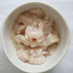 鸡肉切成小块,加料酒和淀粉抓匀腌制10分钟
