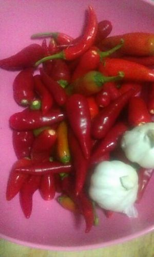 将红辣椒洗净,控干表面水分(一定要弄干哦,有水的话做出来的辣椒酱会坏的。)为了保证辣椒的干爽,我是用纸巾一个一个的擦干的,这个方法适合少量的,如果你是大量的做建议还是老老实实的等它晾干啊