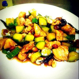 锅中下油,爆香葱姜,下鸡肉翻炒,待鸡肉变色倒入汤汁翻炒,然后倒入黄瓜和花生一起熬制