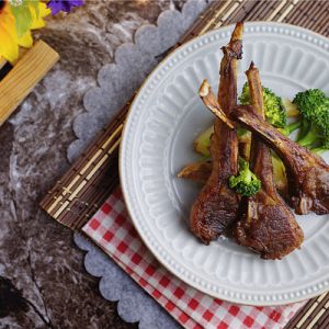 就是这样子藤椒风味烤羊排就完成啦。烫一点西兰花配在一起就可以啦。