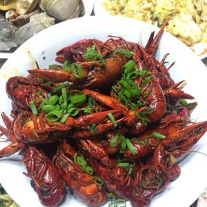 锅里放少许油,然后把这些调料放进去炒香,加小龙虾继续翻炒