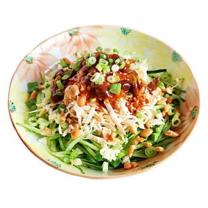 把酱汁浇在鸡丝上 再撒上葱花就好了:-)