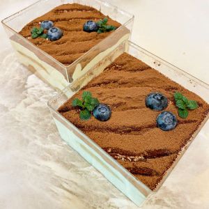 一早起来把提拉米苏放在架子上,准备好可可粉