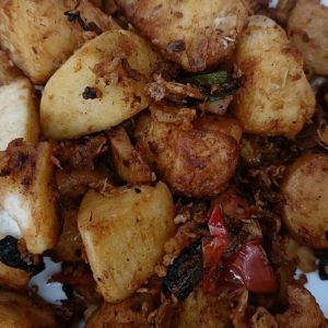 出锅了在陪一个鸡蛋汤,可以放点淀粉。黏糊,特别好喝,