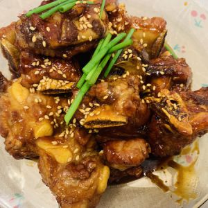 熬成琥珀色,倒入洗净滤干的排骨和调好的料汁