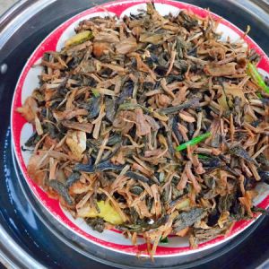 最后出锅时,将盘子倒置即可。最终应该是肉在上,菜在下。我家没有大盘子,所以就没有倒过来了。