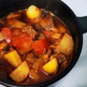 小炖锅加清水,烧开小火炖。一小时以上,肉烂即可。