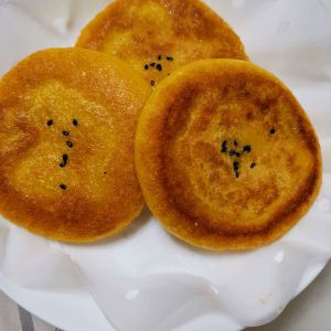 南瓜的软糯和花生芝麻馅的香甜,味道不错。