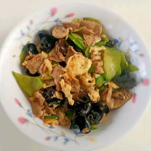 倒入鸡蛋加少量盐、味精最后淋上淀粉芡起锅。