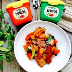 加入这道菜的重要调味料:1勺原酿鲜甜的葱伴侣6月香甜面酱。