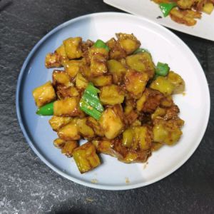 9、炸到茄子外皮硬的时候捞出,重复剩下的茄子全部炸完捞出待用