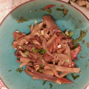 最后放入碗中加入蒜泥,切细的香菜,醋,花椒油,盐,味精,拌匀即可