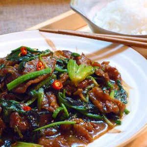 5.待牛肉变色后加入约2汤勺蚝油,翻拌均匀