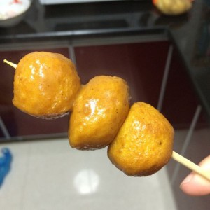 网上买的四海鱼蛋一包22块有32粒,有点小贵的,广东5块钱一大碗啦!没办法,爱吃啊!
