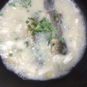 此时汤呈奶白色,撒入葱花,适量盐,大功告成!