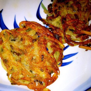 切好丝的土豆,加入香葱,蒜粉,面粉拌匀