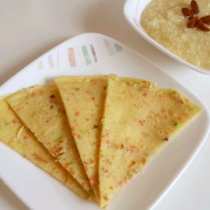 放入蔬菜末,搅拌均匀。看看稠稀程度,稠的话饼就厚,越稀饼越薄,按自己喜好适量添加面粉或者水调节面糊稠稀程度。