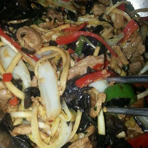 材料切好,先抄肉再放蔬菜抄,酱,就可以了