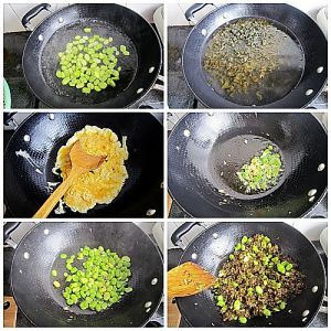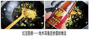 1·锅中烧开水加少许盐把蚕豆焯烫一下过凉备用。 2·再把洗干净的地木耳焯烫过凉备用。 3·炒锅到油烧热倒入打散的蛋液炒熟盛出备用。 4·锅中再加少许油爆香葱姜。 5·倒入蚕豆翻炒均匀加盐和糖调味。 6·再加入地木耳翻炒。